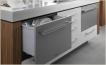 Another manufacturer, Kitchenaid, followed in the footsteps of dishwasher drawer manufacturer Fisher and Paykel and now sells a double drawer set with the Kitchenaid label affixed. If you have other Kitchenaid appliances and are looking for a set of drawers you may want to stick with the Kitchenaid brand. The two drawers fit into the same size space as a 24" dishwasher. Form and FunctionDish drawers have brought about a relatively new concept: if you have a small load of dishes, you can wash just one drawer independently. The popularity of this idea led other dishwasher manufacturers to develop a feature that would allow standard size dish washers to run small half-load cycles, thus, saving energy and water. (Miele, for example, developed the Top Solo Feature for some of its' models. This feature cleans dishware on the top rack only, using a mere 3.2 gallons of water). With the current kitchen trend of appliance integration, the dish drawer is designed to seamlessly integrate into cabinetry. Small and compact, a single drawer can serve as an additional dishwasher in the kitchen, or handle clean up elsewhere. Many find Fisher and Paykel's single drawer dishwashers convenient when located within a kitchen island or wet bar. At the bar, you can keep stemware and martini glasses clean, keeping the party going. Fisher and Paykel DishwasherIf you are looking to buy Fisher and Paykel drawers here is the lowdown: